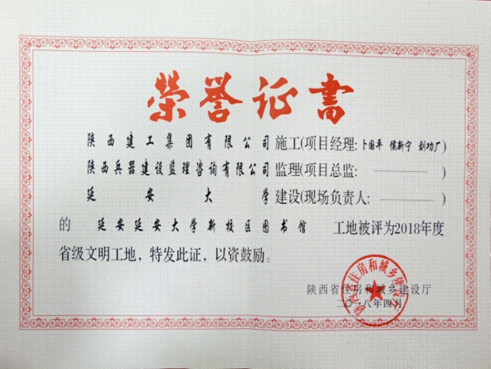 | 2018年度延安市建設(shè)工程質(zhì)量安全生產(chǎn)先進(jìn)集體 |