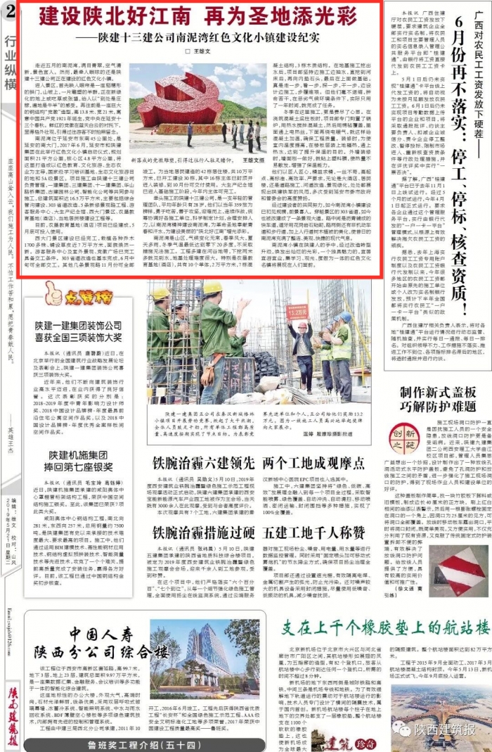 近日,陜建十三建公司負責(zé)管理的南泥灣紅色文化小鎮(zhèn)項目登上《陜西建筑報》,宣傳分享了南泥灣紅色文化小鎮(zhèn)建設(shè)的施工進展情況及十三建公司在建設(shè)中所發(fā)揮的管理作用。