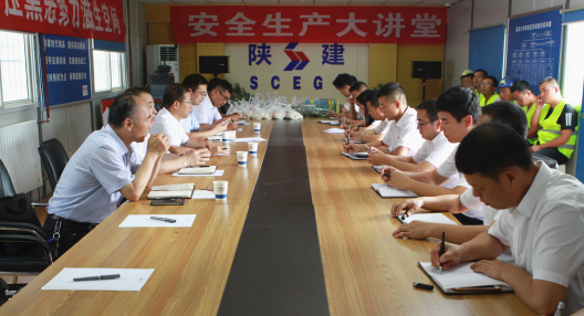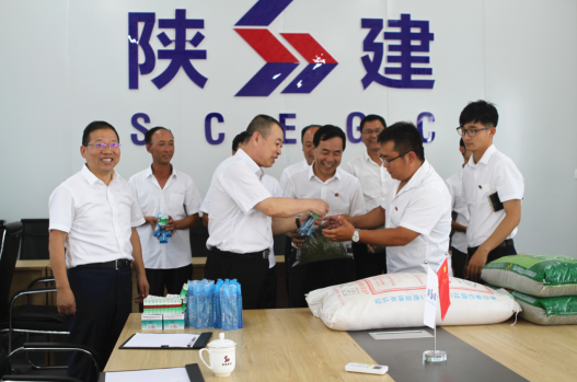 7月15日,陜建集團黨委副書記楊興斌,工會副主席劉宗文,黨委宣傳部副部長楊應龍一行到清華大學附屬中學延安學校項目、延安大學新校區(qū)體育中心項目調(diào)研并對一線職工進行暑期慰問。