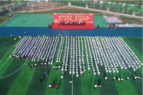 9月2日,在延安學習書院腳下,伴隨著莊嚴的國歌聲,迎著初升的朝陽,由陜建十三建公司總承包,陜建八建集團施工的清華附中延安學校首屆開學典禮隆重舉行。