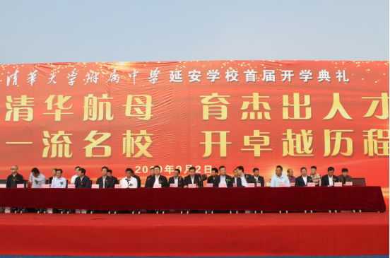 延安市副市長劉曉軍,延安新區(qū)管委會黨工委副書記、主任薛鵬春,延安大學黨委書記薛義忠,延安大學校長張金鎖,清華大學附屬中學校長王殿軍,陜建十三建公司董事長卜國平以及教育局、社會事務(wù)管理局、新區(qū)一中、新區(qū)江蘇中學、陜建八建集團等相關(guān)領(lǐng)導出席活動。