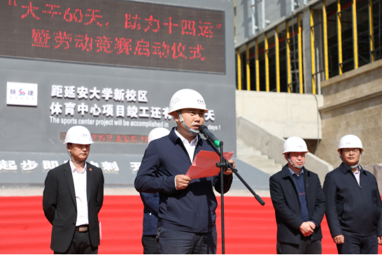 延安大學(xué)黨委委員、副校長(zhǎng)楊偉宏致辭,他代表延安大學(xué)全體師生向疫情期間奮戰(zhàn)在一線的施工人員及陜建集團(tuán)表示衷心感謝,對(duì)十三建公司承建的延大體育中心項(xiàng)目建設(shè)給予充分肯定。他指出,延安大學(xué)體育中心項(xiàng)目作為十四運(yùn)重點(diǎn)建設(shè)項(xiàng)目,意義重大。當(dāng)前,項(xiàng)目建設(shè)進(jìn)入60天倒計(jì)時(shí),希望全體參建人員從延安精神中汲取力量,大力弘揚(yáng)愛(ài)崗敬業(yè)、艱苦奮斗的勞模精神,進(jìn)一步統(tǒng)一思想,提高認(rèn)識(shí),鼓足干勁,用一流的速度,一流的品質(zhì),展現(xiàn)陜建集團(tuán)的國(guó)企風(fēng)采和責(zé)任擔(dān)當(dāng),為第十四屆全運(yùn)會(huì)順利召開(kāi)貢獻(xiàn)力量。