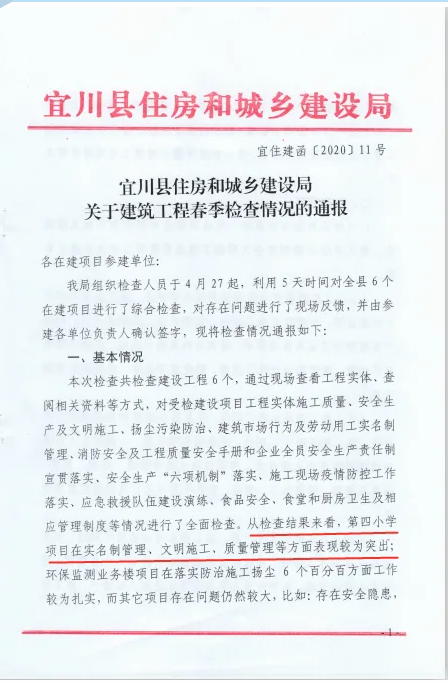 近日,從宜川縣住房和城鄉(xiāng)建設(shè)局傳來(lái)喜訊,陜建十三建公司承建的宜川縣第四小學(xué)項(xiàng)目在全縣在建項(xiàng)目春季綜合檢查中成績(jī)優(yōu)異,受到通報(bào)表?yè)P(yáng)。