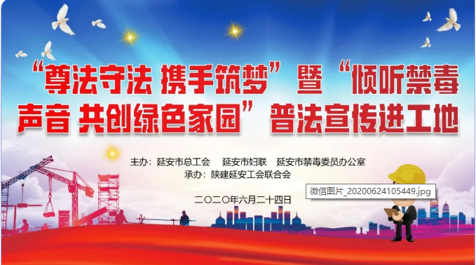 在第33個(gè)國(guó)際禁毒日來(lái)臨之際,為全面貫徹落實(shí)習(xí)近平新時(shí)代中國(guó)特色社會(huì)主義思想和習(xí)近平總書(shū)記關(guān)于禁毒工作重要指示精神,切實(shí)提高農(nóng)民工法律意識(shí)和禁毒意識(shí),6月24日,由延安市總工會(huì)、市婦聯(lián)、市禁毒委員辦公室主辦,陜建延安工會(huì)聯(lián)合會(huì)承辦的“尊法守法 攜手筑夢(mèng)”暨“傾聽(tīng)禁毒聲音 共創(chuàng)綠色家園”普法宣傳教育活動(dòng)在陜建十三建公司延安市新區(qū)信天游文創(chuàng)餐飲街項(xiàng)目舉行。