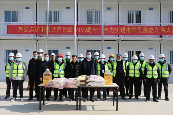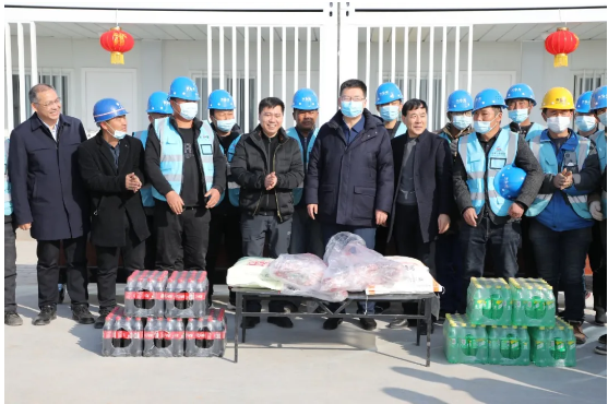 公司慰問項目春節(jié)留崗、依然奮戰(zhàn)在建設(shè)一線的工人們,給他們送去了米、面、油、羊肉等慰問品,為大家送去新春佳節(jié)的美好祝福和深切問候,并囑咐大家,一是要切實做好節(jié)日期間疫情防控工作,在歡度春節(jié)之余,要時刻保持警醒,盡量減少出行和聚集;二是要抓好安全生產(chǎn)工作,加強春節(jié)期間施工作業(yè)現(xiàn)場的安全防護工作,確保施工安全;三是要加強對就地過年工人們的關(guān)心和關(guān)愛,即使春節(jié)不回家,也要讓工人們感受到大家庭的溫暖,讓大家度過一個安心、祥和、歡樂的春節(jié)。