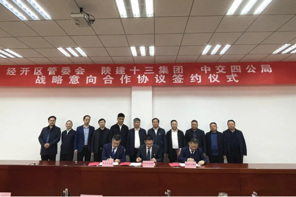 3月15日,十三建集團與張家口市經開區(qū)管委會、中交四公局進行對接座談交流,并簽訂戰(zhàn)略合作協(xié)議。張家口市經開區(qū)黨工委書記李正樸,黨工委副書記、管委會主任李軍,中交四公局副總經理孟祥源,十三建集團黨委書記、董事長卜國平,經開區(qū)相關部門,中交四公局及十三建集團相關領導出席簽約儀式。