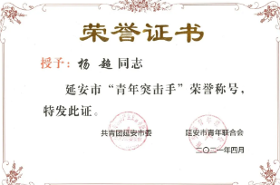 陜建十三建集團(tuán)團(tuán)委被授予“延安市五四紅旗團(tuán)委”稱號(hào),集團(tuán)南泥灣現(xiàn)代農(nóng)業(yè)示范園項(xiàng)目青年突擊隊(duì)被授予“延安市青年突擊隊(duì)”稱號(hào),楊永宏被授予“延安市十佳青年突擊手”稱號(hào),薛淑元被授予“延安市優(yōu)秀共青團(tuán)干部”稱號(hào),楊超被授予“延安市青年突擊手”稱號(hào),李大衛(wèi)被授予“延安市青年崗位能手”稱號(hào)。