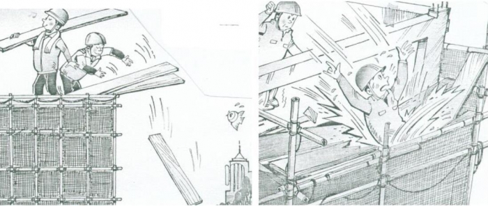 (一)“三寶”防護(hù) 安全帽、安全帶、安全網(wǎng)是安全“三寶”。作業(yè)現(xiàn)場(chǎng)人員應(yīng)做到:一是進(jìn)入作業(yè)現(xiàn)場(chǎng)的職工要戴安全帽;二是高空作業(yè)人員須系安全帶;三是高處作業(yè)點(diǎn)的下方必須設(shè)安全網(wǎng)。