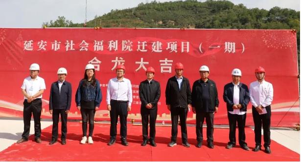 延安市民政系統(tǒng)職工代表,社會福利院職工代表,各設(shè)計、施工、監(jiān)理單位代表及全體項目管理人員等參加封頂儀式。