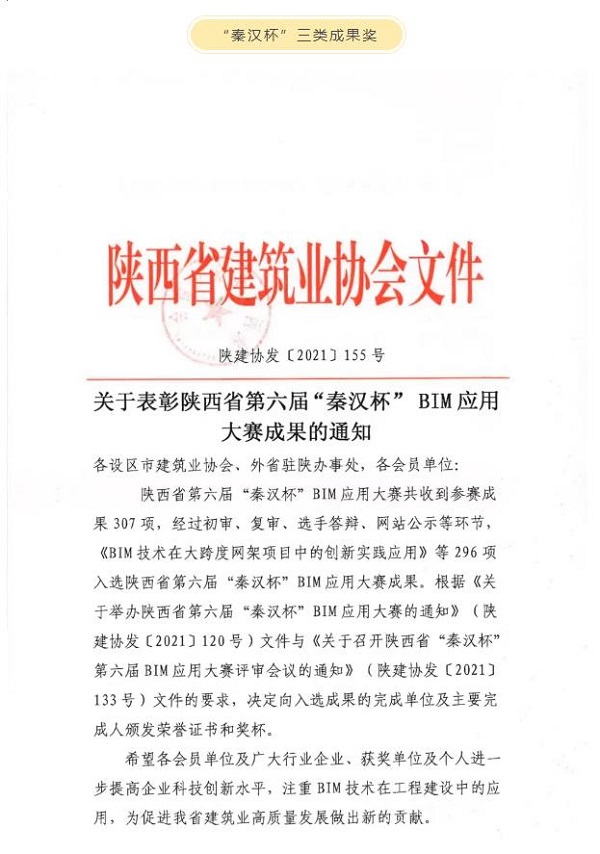 近日,集團(tuán)金鴻·行知坊項(xiàng)目復(fù)雜地形綜合BIM技術(shù)應(yīng)用相繼榮獲2021第四屆“優(yōu)路杯”全國(guó)BIM技術(shù)大賽“優(yōu)秀獎(jiǎng)”、2021年全國(guó)BIM技術(shù)應(yīng)用大賽“優(yōu)秀獎(jiǎng)”、陜西省第六屆“秦漢杯”BIM應(yīng)用大賽“三類(lèi)成果獎(jiǎng)”。