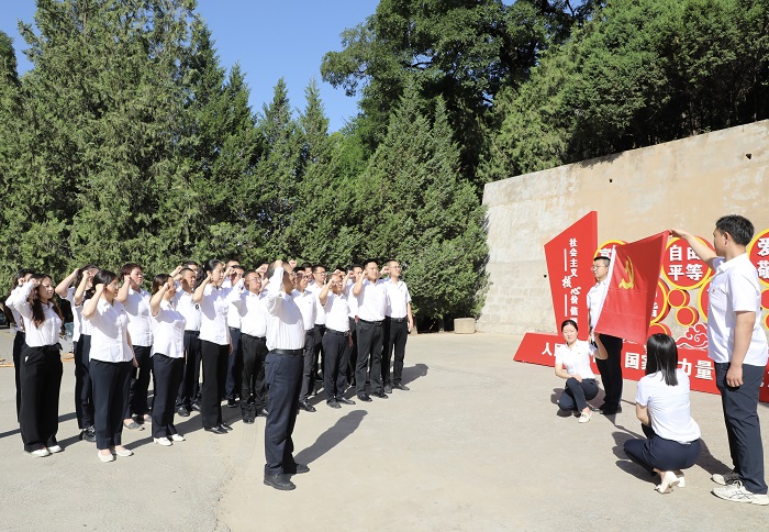 在楊家?guī)X革命舊址,集團黨委書記、董事長卜國平帶領(lǐng)全體黨員,面對黨旗高舉右手,齊肩握拳,再次莊嚴(yán)宣誓。“我志愿加入中國共產(chǎn)黨……隨時準(zhǔn)備為黨和人民犧牲一切,永不叛黨?!辩H鏘恢宏的誓詞,聲聲震耳,強烈震撼著在場的每一位黨員,一字一句,神圣而豪邁,充分體現(xiàn)了黨員同志們對中國共產(chǎn)黨的無限忠誠和熱愛。隨后,在講解員的引導(dǎo)下,大家先后參觀中央大禮堂,毛澤東、朱德、周恩來等老一輩無產(chǎn)階級革命家故居,了解了黨的七大的歷史背景、會議過程和重要意義,重溫艱苦奮斗、自力更生的延安精神。