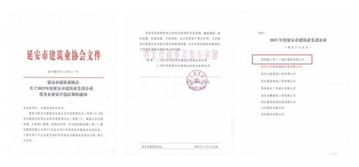 近日,延安市建筑業(yè)協(xié)會(huì)公布了2023年度延安市建筑業(yè)先進(jìn)企業(yè)、優(yōu)秀企業(yè)家評(píng)選結(jié)果,陜西建工第十三建設(shè)集團(tuán)有限公司被評(píng)為2023年度延安市建筑業(yè)先進(jìn)企業(yè);集團(tuán)總工程師、新型建材公司黨支部書(shū)記、董事長(zhǎng)王弘起被評(píng)為優(yōu)秀企業(yè)家。