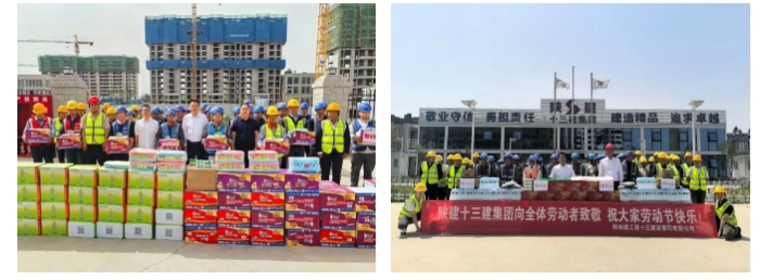 “五一”期間,集團(tuán)深入大荔同州府邸住宅區(qū)、邯鄲匯寶康城一期(D,E)區(qū)等重點建設(shè)項目慰問節(jié)日期間堅守崗位的一線員工,向奮戰(zhàn)在項目一線的全體勞動者致以節(jié)日的問候和崇高的敬意,為他們送去綠豆、冰糖、藿香正氣水、飲料、方便面等慰問品。