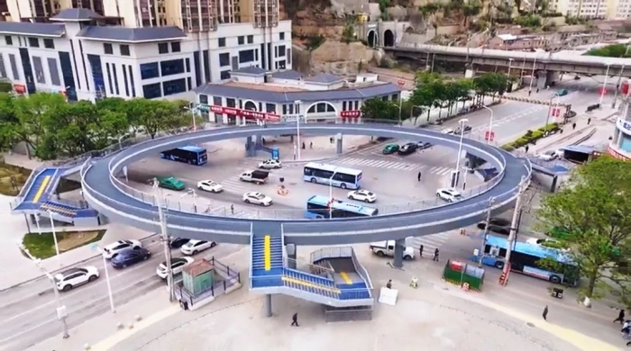 項目配建了一座四向互通式過街天橋--天橋設(shè)計為橢圓形,周長174米,欄桿高1.45米,橫跨柳林路及百合路,串聯(lián)七里鋪公園南北地塊與道路東側(cè)區(qū)域。天橋建成后,將有效解決二莊科十字路口人車混行問題,通行效率得到大幅度提升,為市民出行筑起了“安全屏障”。